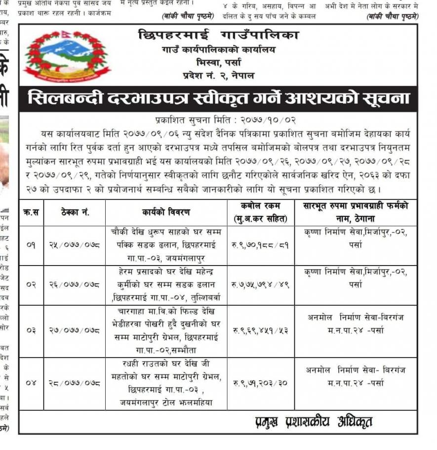 सार्वजनिक खरिद/बोलपत्र सूचना